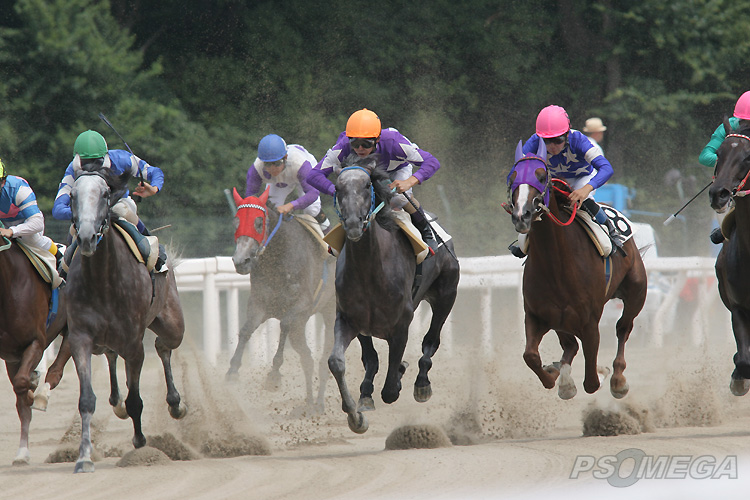 ![]() ハナを奪う各馬 スタート直後、先頭を競う各馬 園田競馬場 '05/08/17 |