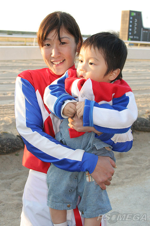 ![]() 全日本レディース招待 総合優勝の岩永騎手、地元ファンの子供を抱っこ 地元・荒尾のファンが、岩永騎手の勝負服を真似た服を子供に着せていた。 荒尾競馬場 '05/11/22 使用機材 Canon EOS kissDN SIGMA 18-50mm F3.5-5.6 DC |