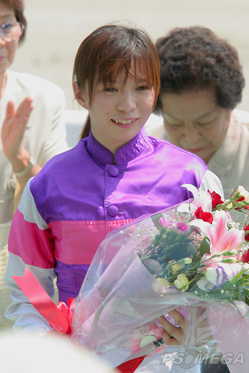 ![]() 宮下瞳騎手、女性騎手通算勝利記録更新 花束を抱える宮下騎手 名古屋競馬場 '05/07/18 使用機材 Canon EOS 20D EF 70-200mmF2.8L USM エクステンダー1.4X |