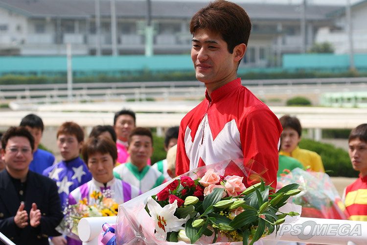 ![]() 宮西騎手引退セレモニー 爽やかな笑顔の宮西騎手 園田競馬場 '06/04/27 |