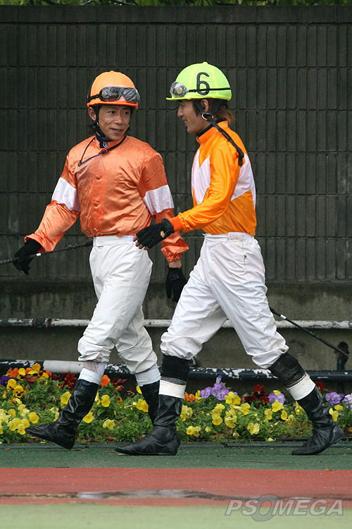 ![]() 赤木騎手と木村騎手 元兵庫所属の赤木騎手も、岩田騎手のように現役時代の勝負服を着てくるのか・・・ と思ったが、枠番と同じ色の服。 園田競馬場 '06/05/17 |