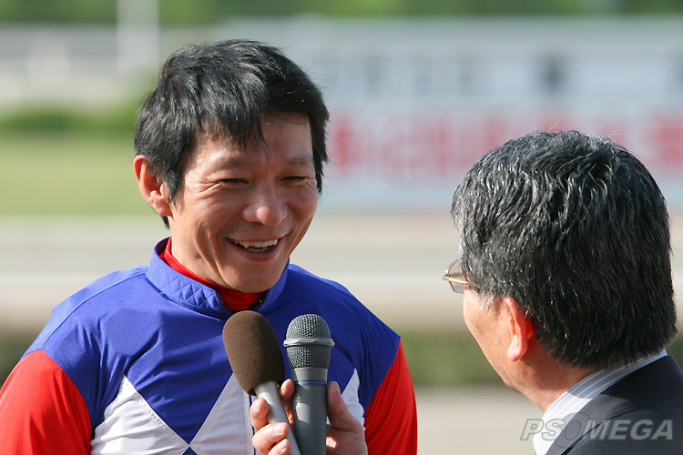 ![]() 第42回兵庫大賞典 笑顔でインタビューに答える川原騎手 園田競馬場 '06/05/05 |