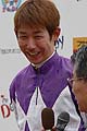 笑顔でインタビュー、下原騎手