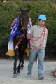 記念撮影の岩田騎手とロードバクシン