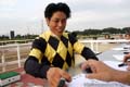 サインをする吉田稔騎手