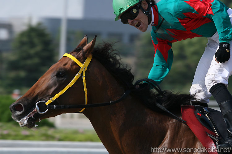 ![]() 第8回兵庫ダービー 優勝はユキノアラシ。叫ぶながらガッツポーズする田中学騎手 →大きいサイズの写真(1500×1000pixel) 園田競馬場 '07/06/07 |